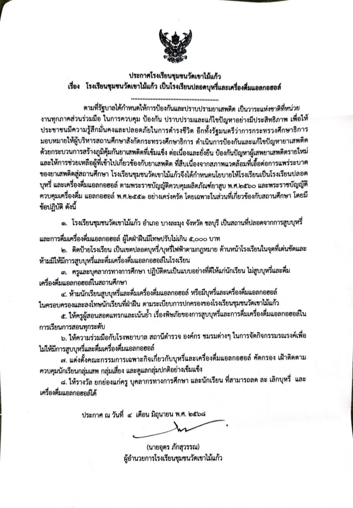 ข้อมูลพื้นฐานโรงเรียน ประชาสัมพันธ์ รอบรั้วโรงเรียน ประกาศโรงเรียนชุมชนวัดเขาไม้แก้ว มิถุนายน 3, 2025เมษายน 3, 2026 wipawan 0 Comments เรื่อง โรงเรียนชุมชนวัดเขาไม้แก้ว เป็นโรงเรียนปลอดบุหรี่และเครื่องดื่มแอลกอฮอร์