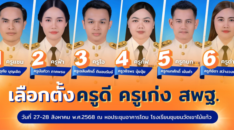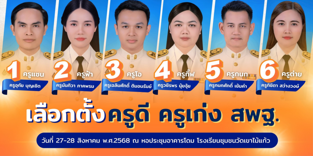 เข้าร่วมกิจกรรมและร่วมกันโหวด “ครูดี ครูเก่ง สพฐ.” ประจำปีการศึกษา 2568 ในที่ 27 และ 28 สิงหาคม พ.ศ.2568 ตั้งแต่เวลา 08.30 เป็นต้นไป ณ อาคารโดมอเนกประสงค์ โรงเรียนชุมชนวัดเขาไม้แก้ว